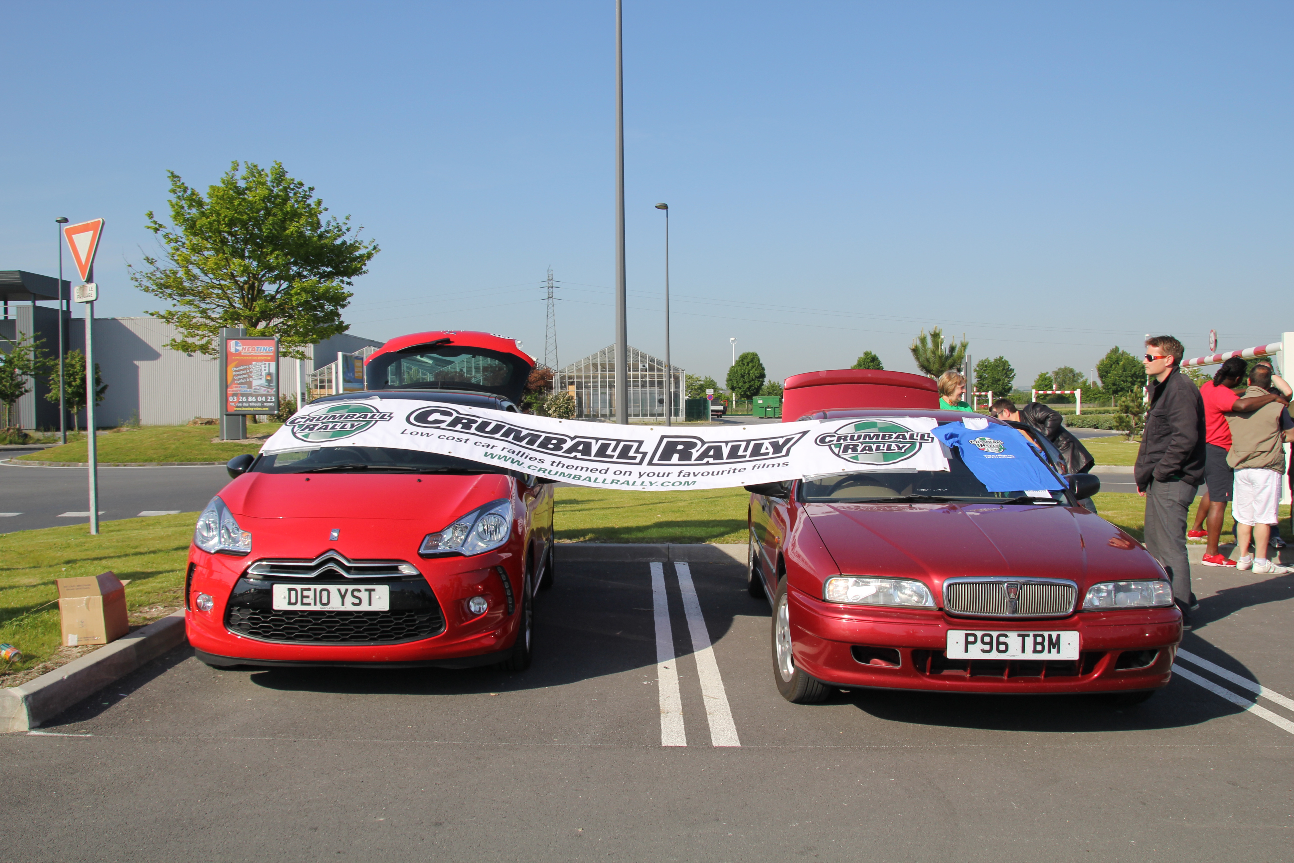If you had come to the E.Leclerc car park in Reims at 8:15am yesterday, you would have seen an unusual sight. 86 growling cars congregated with only the uniform ‘Crumball Rally’ stickers as a point of reference among the otherwise eclectic bunch. Cars dressed as USSR missiles, people carriers dressed as gold bullions, a Volvo estate covered in AstroTurf and brickwork were some of the eye-catching automobiles. The participants were just as sensational looking – clowns, The Beatles, Blues Brothers, crayons and chicken onesies.